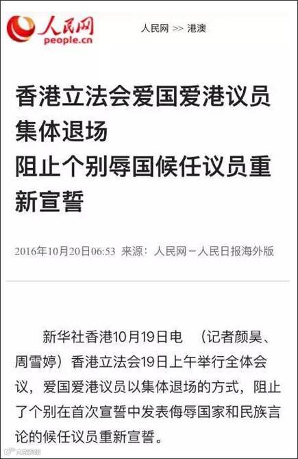 19日当天,香港立法会爱国议员以集体离场的形式,阻止辱华议员进行第二次宣誓,最终立法会宣誓仪式也因到场人数不足未能举行。