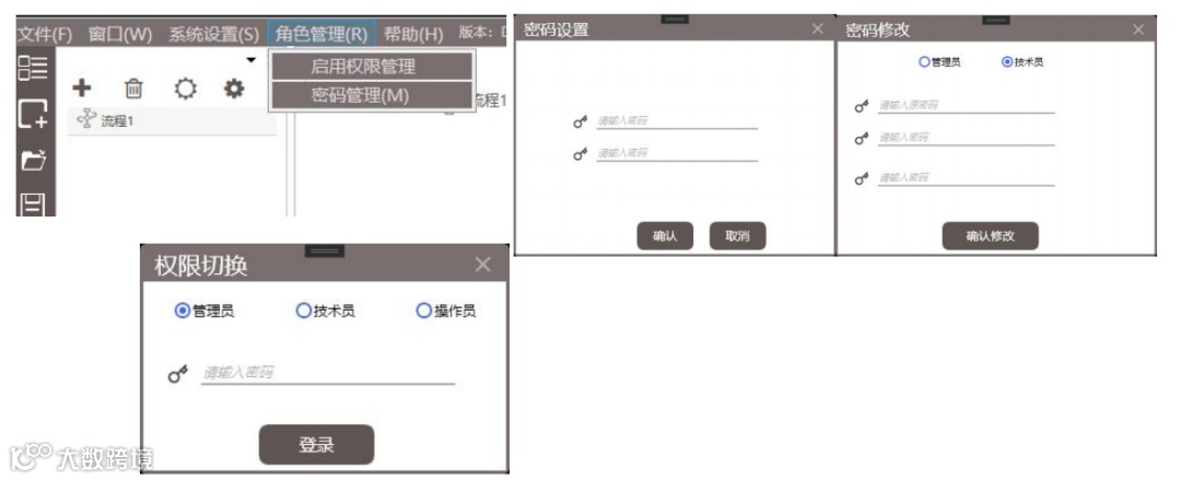 4.权限管理:启用权限管理,密码管理、权限切换
