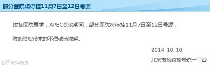 No.7 APEC会议期间,部分医院将停挂号源