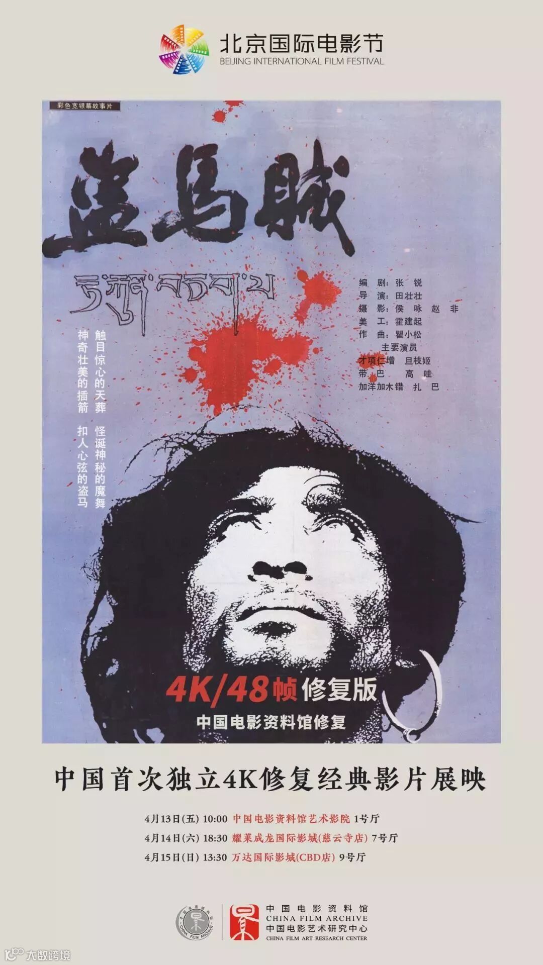 当时那个版本的《盗马贼》由资料馆负责的“国家电影档案影片数字化修护工程”精致修复的2K版,开幕式上还需宣布启动对《盗马贼》的4K精致修复,这是我国首次对影片进行4K修复。
