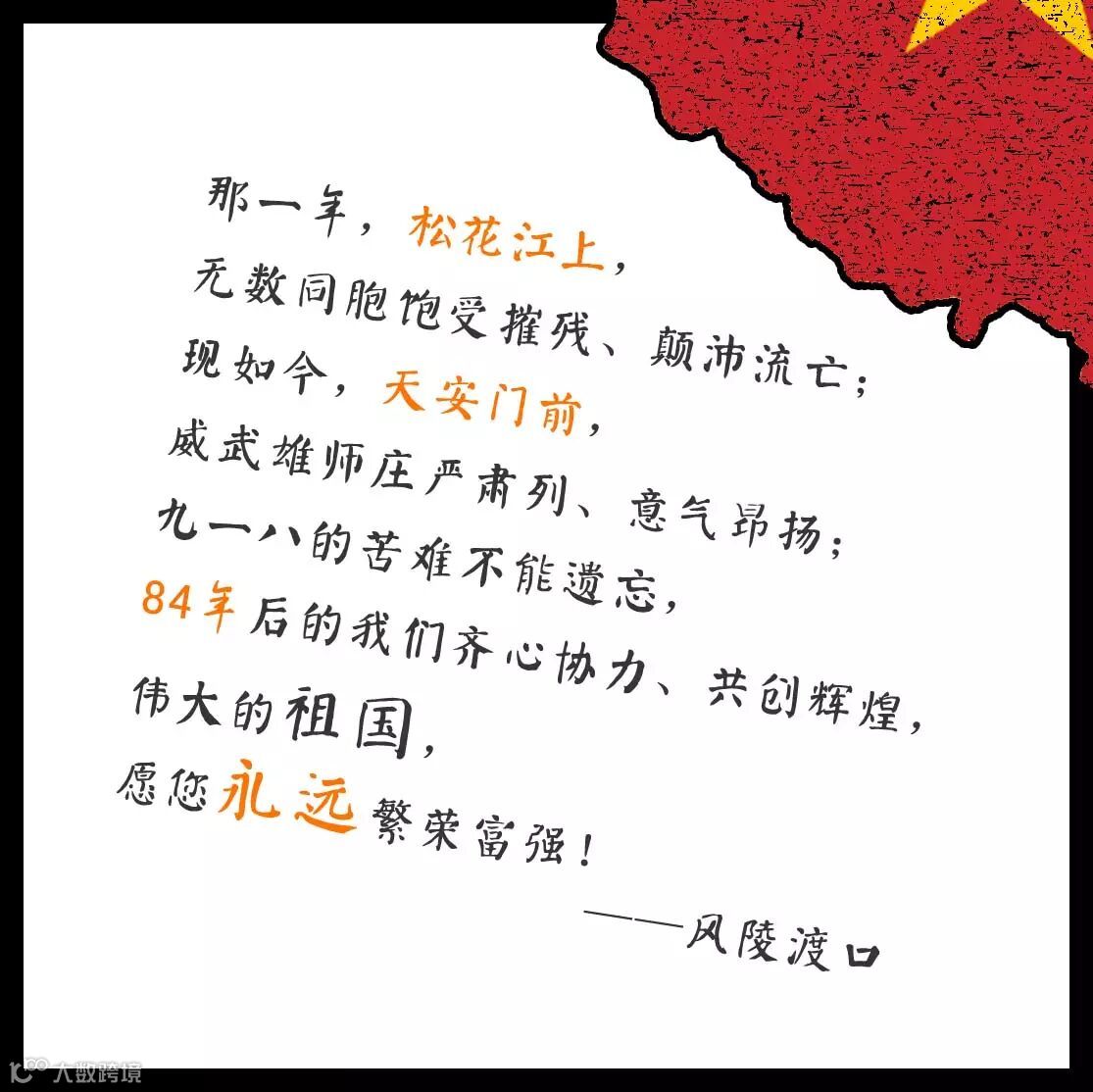 84年的艰苦奋斗成就了我们今天的幸福生活,沐浴着春风的我们更应不忘国耻、警钟长鸣!