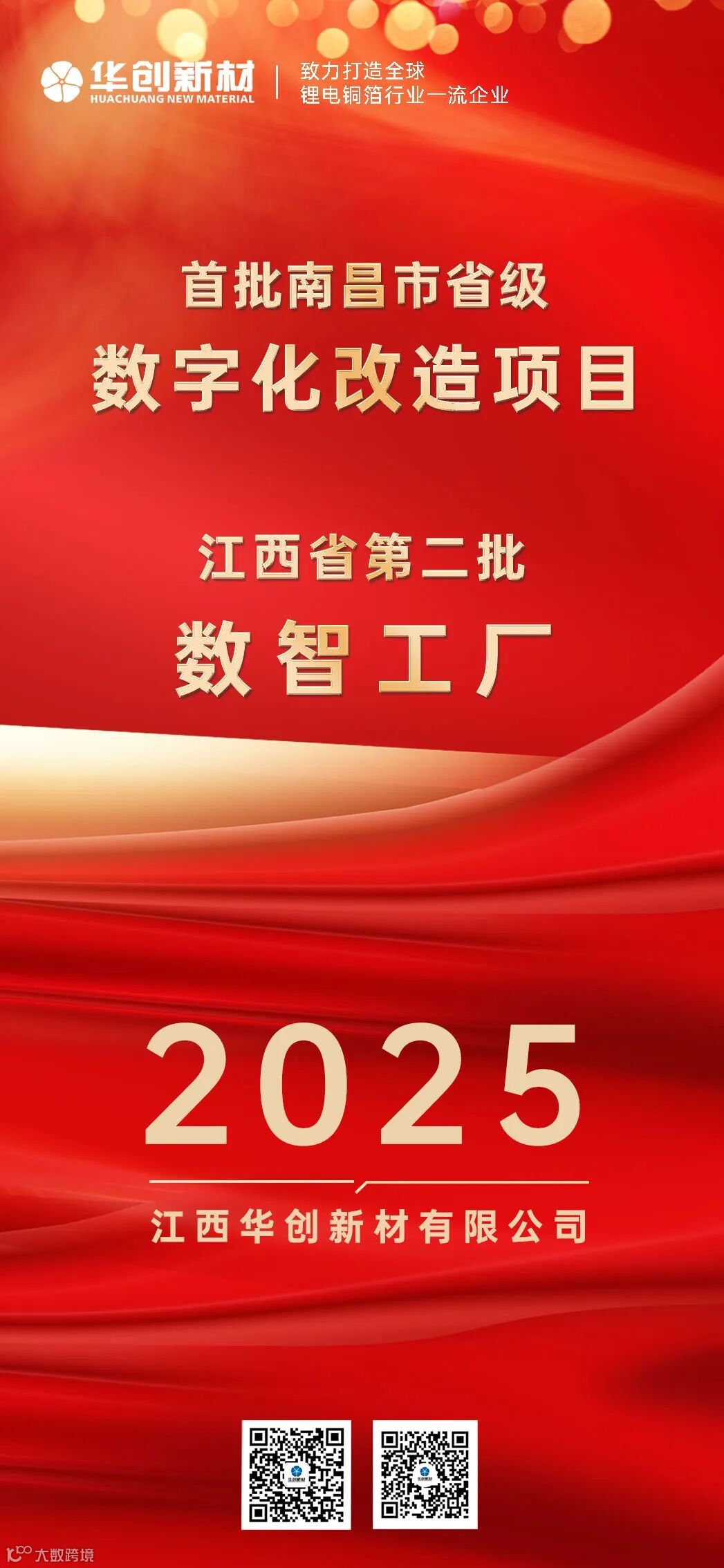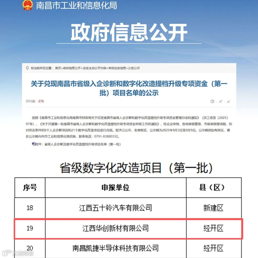 加快现代化制造业体系,提升高端化、智能化、绿色化水平,是华创新材高质量发展的必然要求。连日来,江西华创先后荣获“首批南昌市省级数字化改造提档升级项目”及“第二批江西省‘数智工厂’转型标杆”称号,不仅体现了公司持续加快数字化转型的步伐,更标志着华创持续提升数智化发展的水平。
