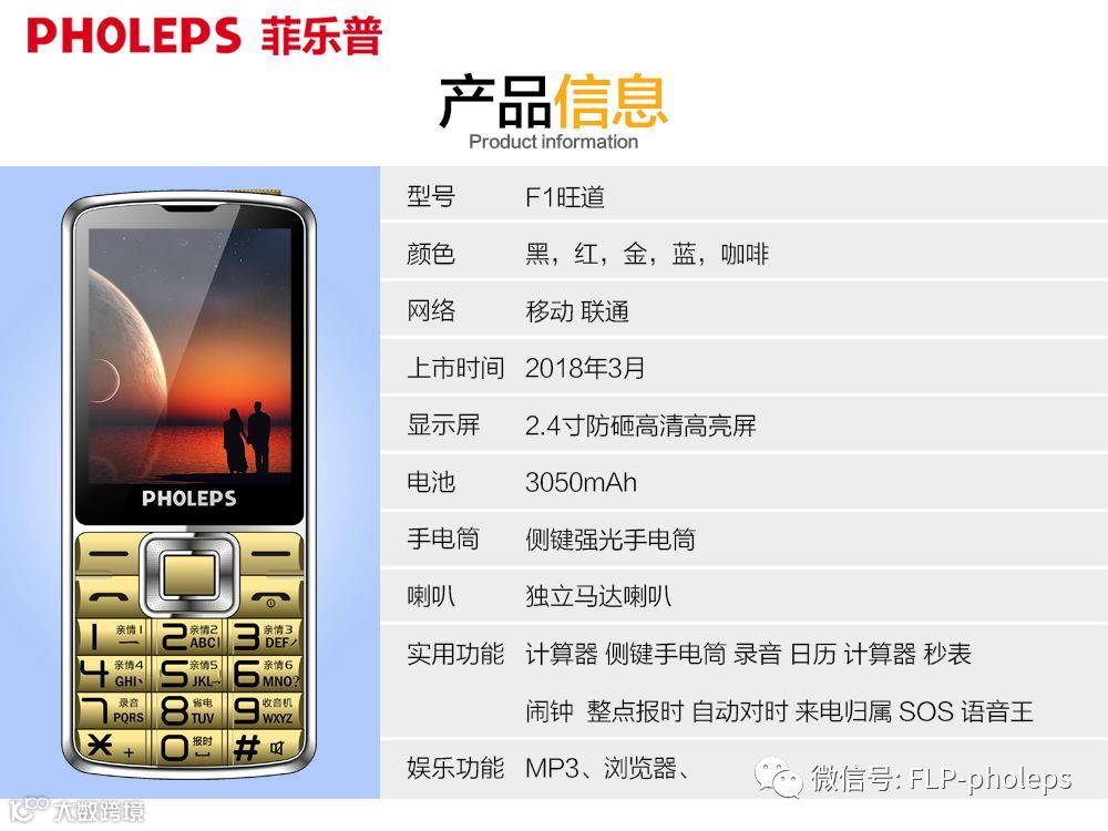 导读:菲乐普2018年又一力作:F1旺道,2.4高清防砸屏,抗震防摔,保屏一年,独立马达喇叭,侧键手电筒,持久待机