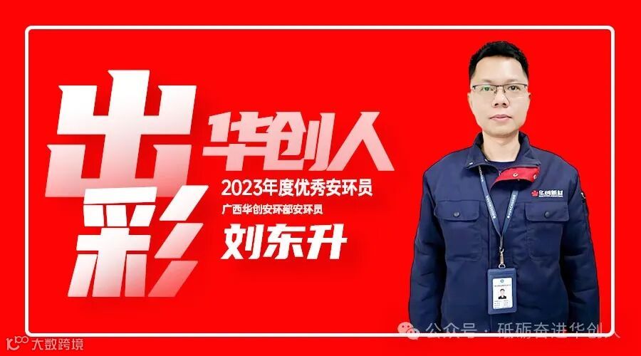 不驰于空想,不骛于虚声,在我们笃定前行的铿锵步履中,有这样一个人,以“时不我待、只争朝夕”的精神,以“居安思危、一丝不苟”的态度,横向到边、纵向到底,以严谨垒实安全之壁,用责任筑牢生产之基,他就是广西华创安环部——刘东升,华创新材2023年度优秀安环员。