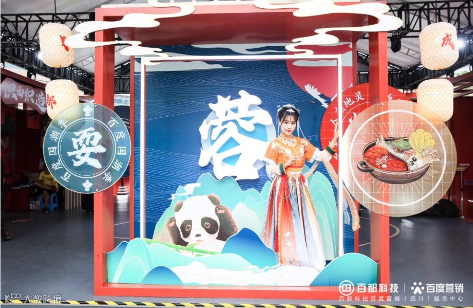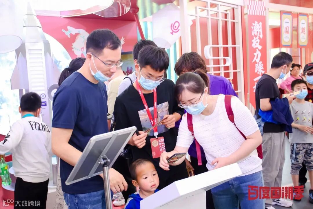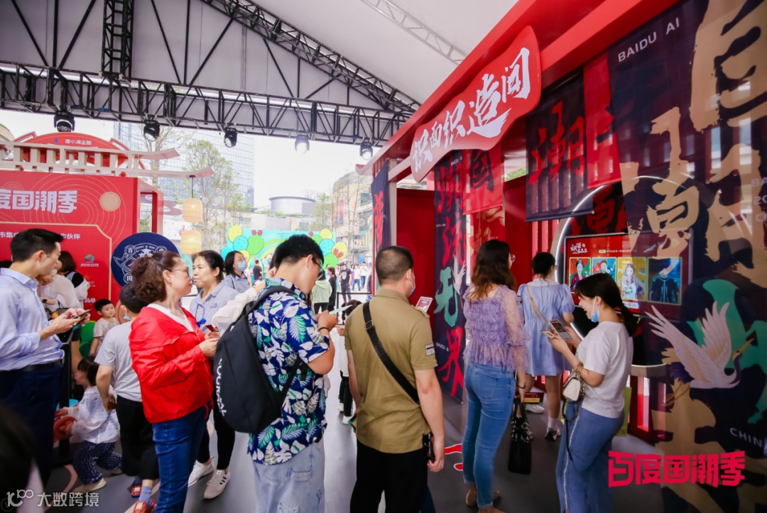抵达百度国潮AI市集,超具设计感的场景吸爆眼球,领取游戏攻略,集齐印章,即可召唤国风好物。现场人声鼎沸,国潮文化势不可挡。
