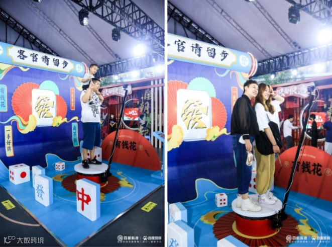 在热闹的市集里,对着镜头拍照即可一键AI换脸,在黑科技中释放自我。一共有4种国风模式可挑选,分分钟就能凹出精致古风造型,生成精美国风画像后,就能直接在现场打印出自己的专属丝巾。