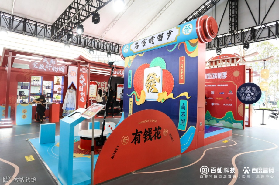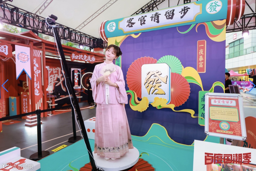 “AI市集”以场馆的形式向公众开放,推出多款AI互动游戏,游客可以线下游览并体验“AI科技国潮”带来的感官刺激,也可通过百度App搜索“百度国潮季”,即可线上跟随主播观展。
