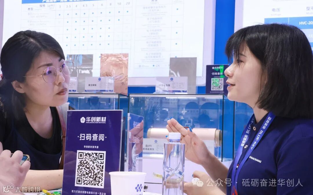展会现场,华创新材展位人流如织,来自宁德时代、LG新能源、ENOVIX等全球头部企业的技术专家驻足交流。ENOVIX技术总监Dr. Robert表示:“华创的铜箔技术已走在行业前列,新品性能令人惊叹,期待更深入的合作!”