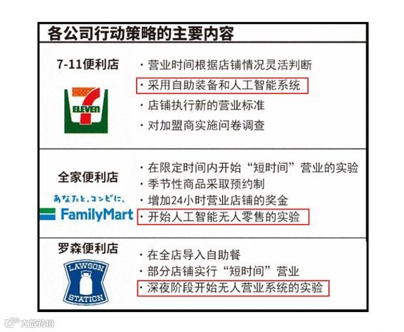 目前,人手不足日益严重虽给便利店24小时营业带来挑战,但便利店业界包括全家便利店和罗森在内的3家大公司都对24小时营业的重新评估持否定态度。