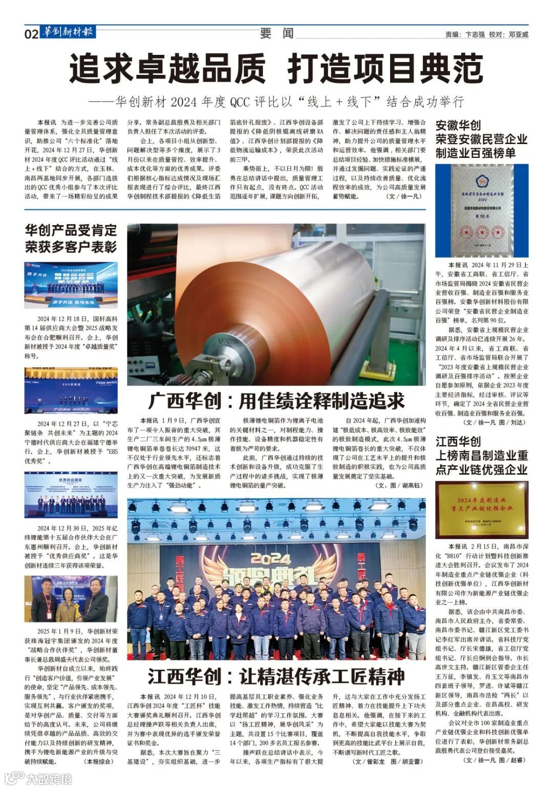 安徽华创新材料股份有限公司(简称华创新材)成立于2016年10月18日,目前在国内有多个生产基地,主要经营范围为电解铜箔得生产、销售及研发。我们致力打造全球电解铜箔行业一流企业。