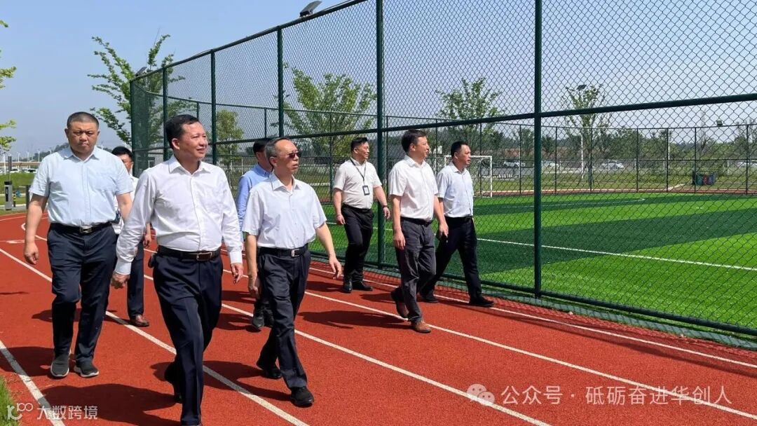 周盛夫(前排左一)陪同刘德辉(前排左二)调研职工运动场