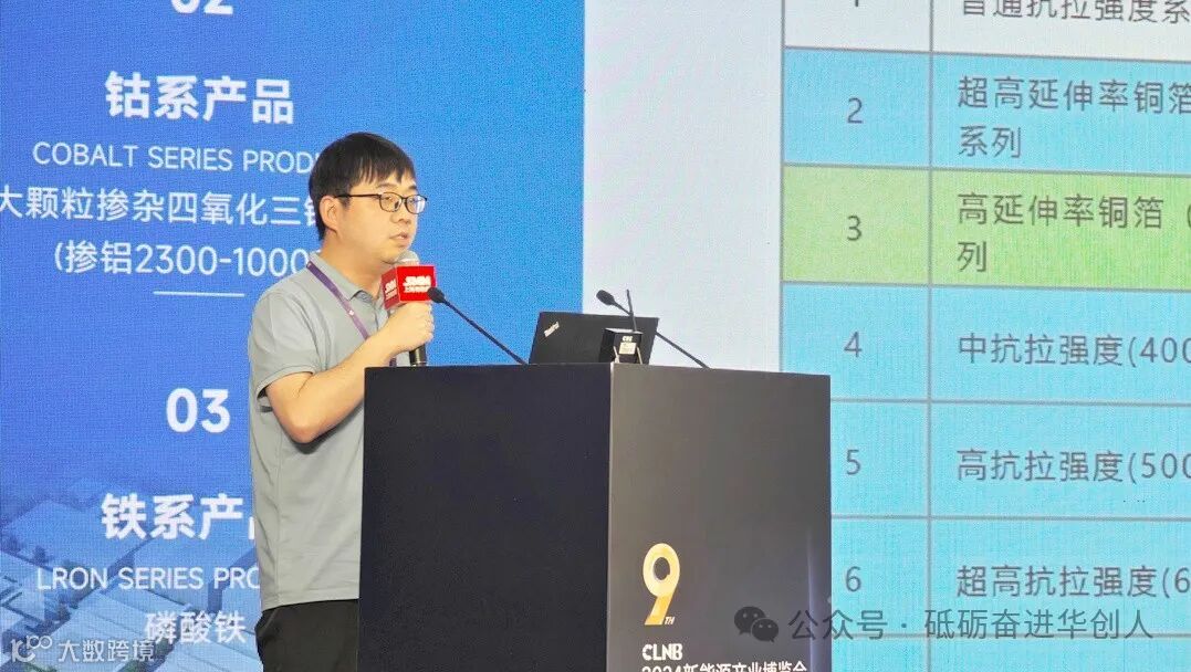 “锂电铜箔向更薄化方向发展,是必然趋势。”他在演讲中说道,近年来,华创新材在超薄化产品的研发进程中,已成功开发3.5μm电解铜箔并具备量产能力,其连续卷长突破30000米;4μm电解铜箔实现了连续卷长突破30000米;4.5μm和5μm电解铜箔则连续卷长超40000米。目前,这些产品均已进入稳定量产阶段,并持续为市场提供性能稳定的中高抗产品,以满足不同领域对高性能铜箔的多样化需求。
