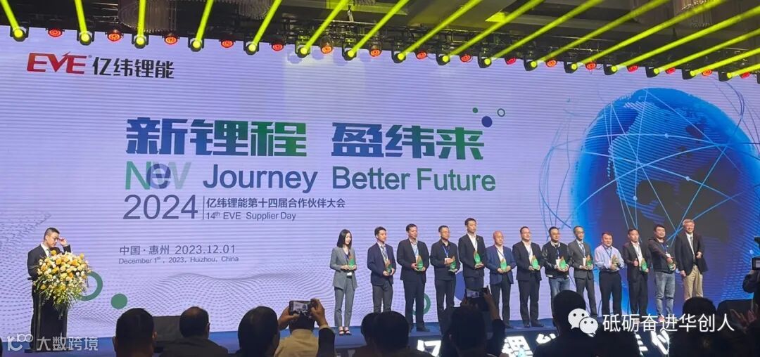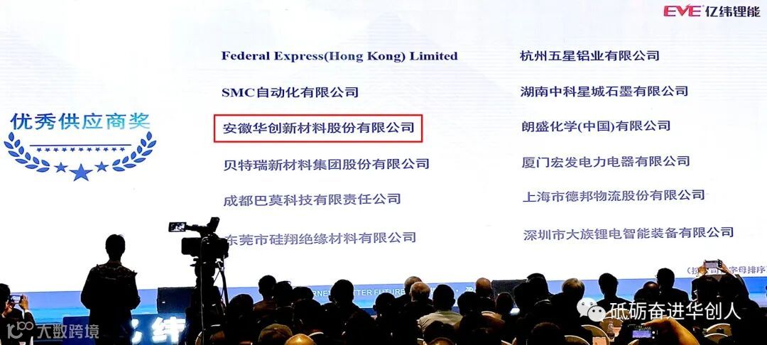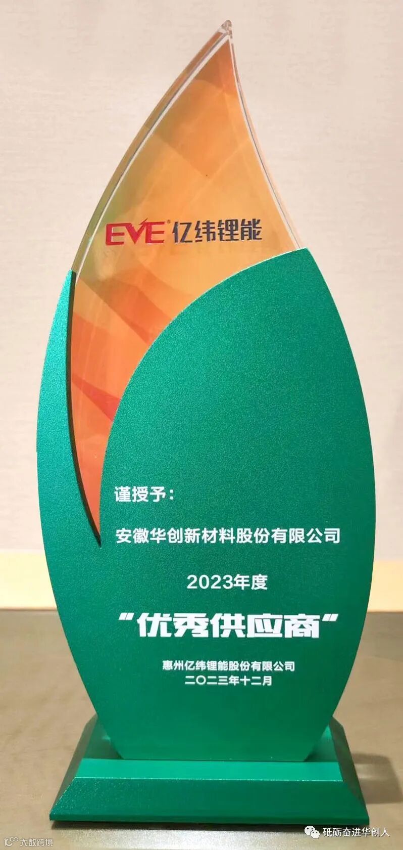12月1日,以“新锂程,盈纬来”为主题的2024年亿纬锂能第十四届合作伙伴大会在广东惠州举行。会上,安徽华创新材料股份有限公司(以下简称“华创新材”)被亿纬锂能授予“2023年度优秀供应商”。