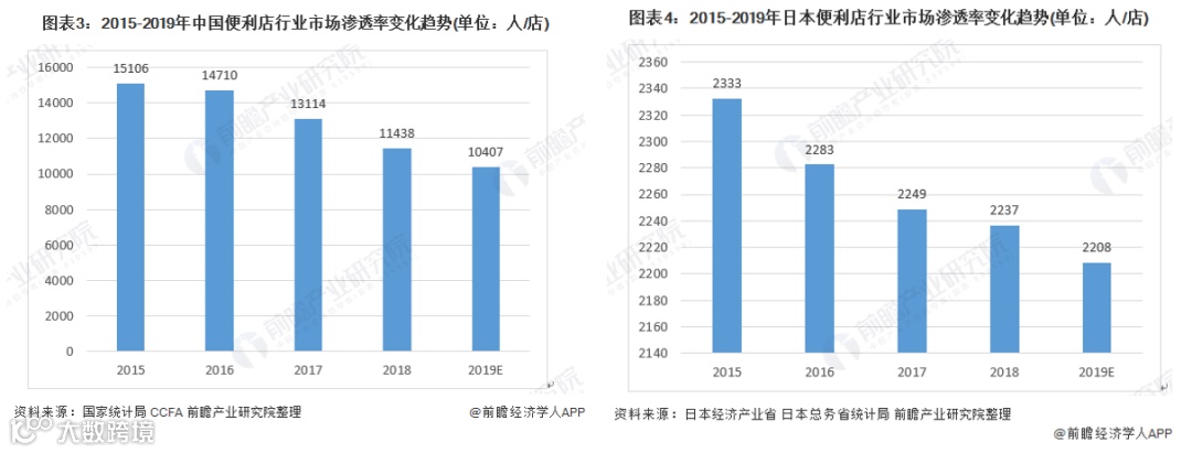 前瞻产业研究院测算,2019年我国便利店行业市场渗透率达到10407人/店,而日本为2208人/店。相比之下,前者的渗透率几乎只有后者的五分之一,前途看似一片光明。