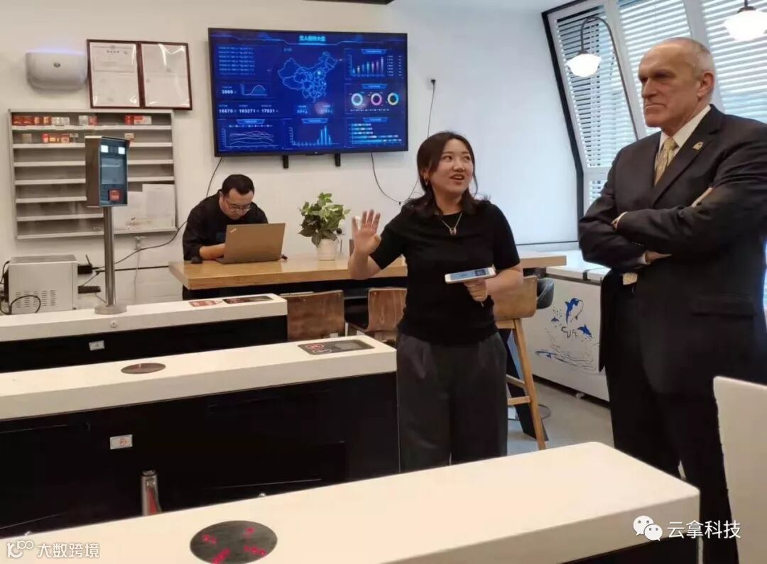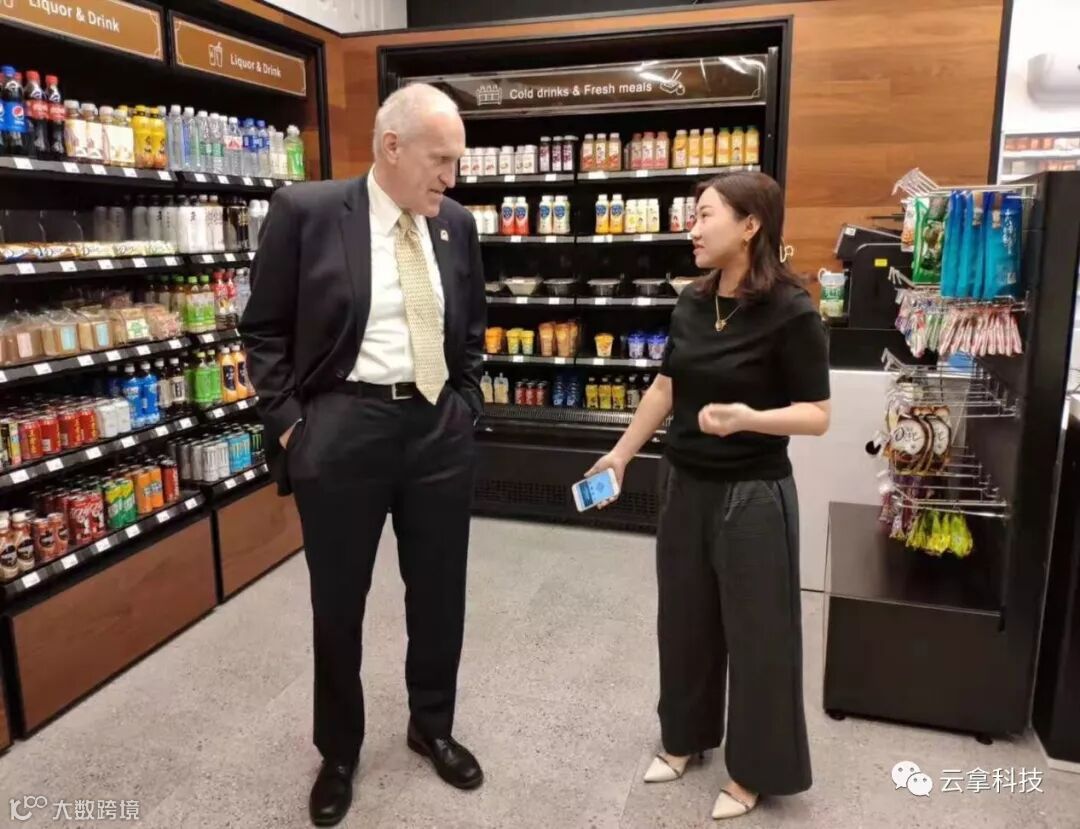 张总邀请威尔科克斯校长体验了云拿无人便利店,并全方位介绍了国际领先的云拿AI新零售方案。