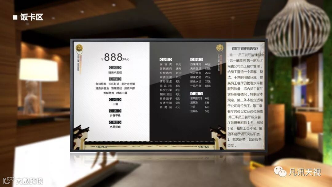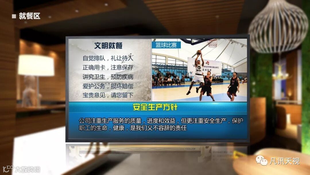 主要放置在就餐区域,用于就餐纪律宣导、文体活动宣传、公司生产目标宣导信息的发布等。
