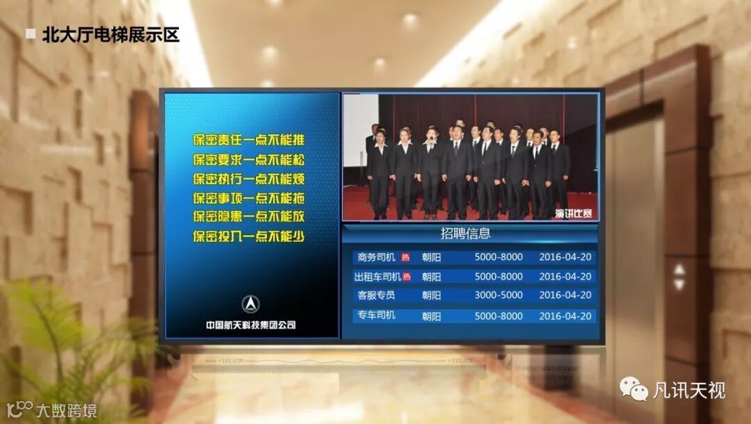 主要放置在北大厅电梯区域,用于企业保密宣导、文体活动宣传信息的发布等。