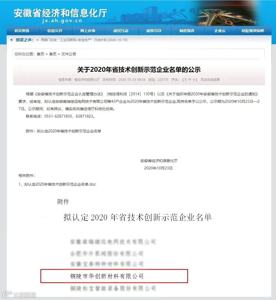 疫情发生以后,公司高度重视,周密部署,迅速行动,严格按照集团和当地政府防控工作要求,一方面抓防控抗疫,一方面抓复工复产。安徽省防疫督查小组在突击检查华创新材后,认为华创管控有力,被确定为安徽省疫情防控典型企业,要求铜陵市人民政府组织材料报省内推广;安徽省省委书记、副省长、国家卫健委法规司副司长、铜陵市市委书记、副市长等领导先后到华创检查指导抗疫和复工复产工作,对华创的疫情防控工作给予了充分肯定;2月21日,安徽省省委书记李锦斌在现场对华创公司的抗疫组织工作和复工复产工作给与了高度肯定,指示陪同的委办局领导:对华创这样的企业要给予重点扶持,当晚“安徽新闻联播”在开播头条进行了详细报道。