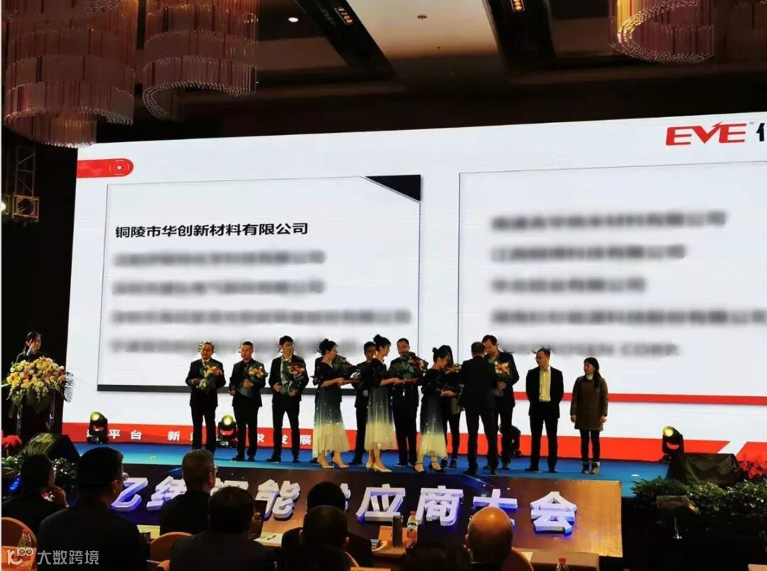 2020年12月15日下午,亿纬锂能2021年度供应商大会在广东惠州富力万丽酒店举行。在参会的上百家供应商中,华创新材自去年获得供应商“最佳协同奖”后,今年更上一层楼,获得“2020年优秀供应商”称号。