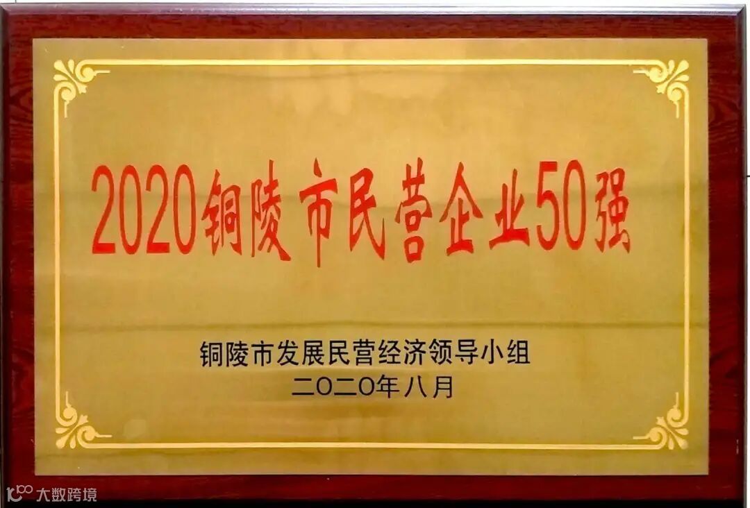 五、荣获“2019年度铜陵市地方企业50强”、“2020铜陵市民营企业50强”称号