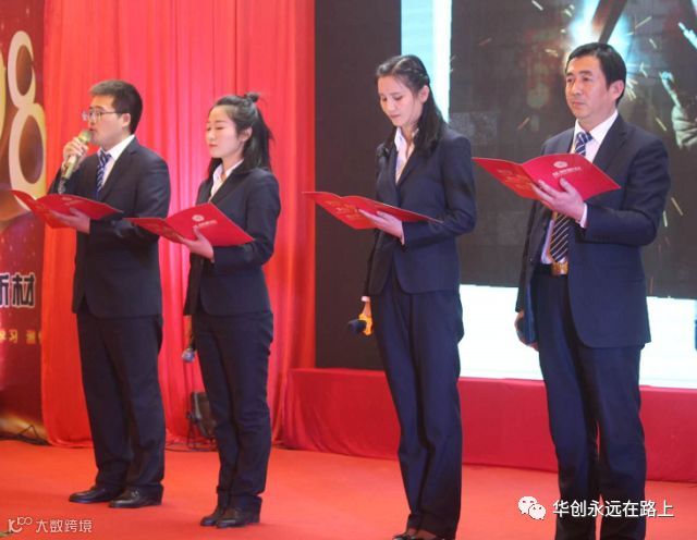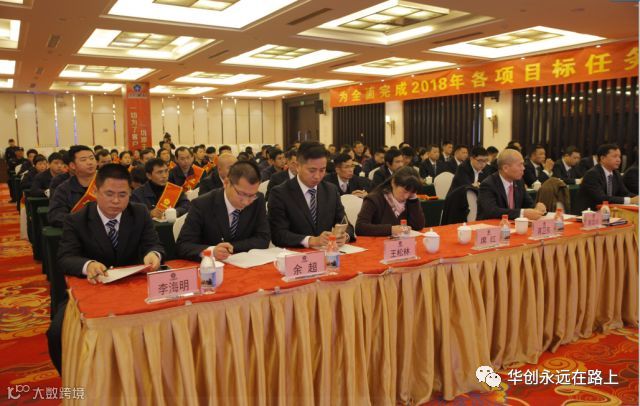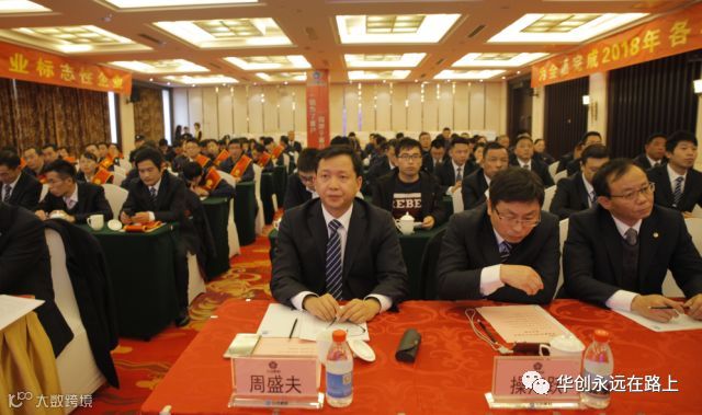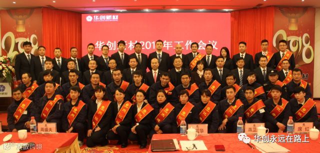 会议共分七项议程:奏国歌;华创新材年度工作报告;签订2018年度目标责任状;表彰先进集体和个人;董事长讲话;集团公司陈董事长作指示;合影留念。