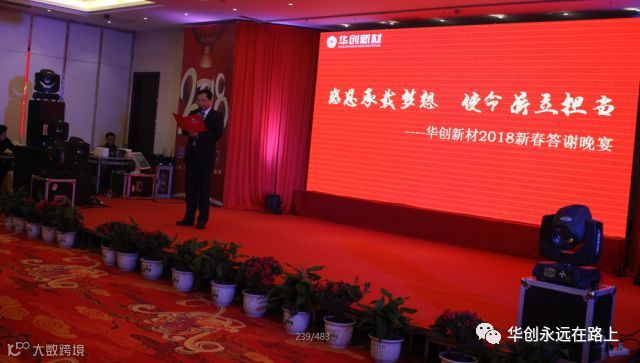 2018年1月19日,“感恩承载梦想 使命鼎立担当”-----华创新材2018年度工作会议暨新春答谢晚宴在铜陵市逸顿国际大酒店隆重举行。会议由公司副总经理殷勇主持,集团公司陈雪华董事长亲临会场,并作了重要指示,公司领导、科级以上干部、各类先进代表、办公室人员以及员工代表共100余人参加了会议,会议回顾了2017年工作中的成绩与不足,安排和部署了2018年的工作,为2018年工作目标的实现指引了方向。