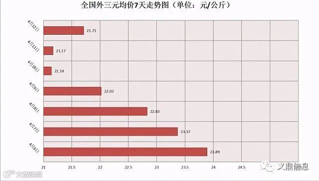说不定4月10日会成为重要的时间节点。 当天,全国生猪平均价格降至每公斤21.14元,为近一年多来最低价。 之后,最后三天猪的价格开始反弹。 截至13日,外三元生猪平均价格已回升至22.30元/公斤,较前一天上涨0.59元。 至于猪内三元和土杂猪,价格也略有上涨,分别达到21.68元和21.15元。 这种猪价格反弹的力量,