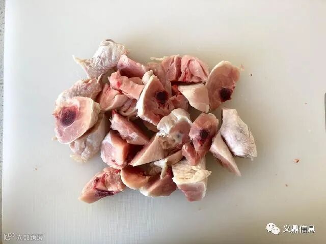 3.鸡腿洗净,剁成小块。