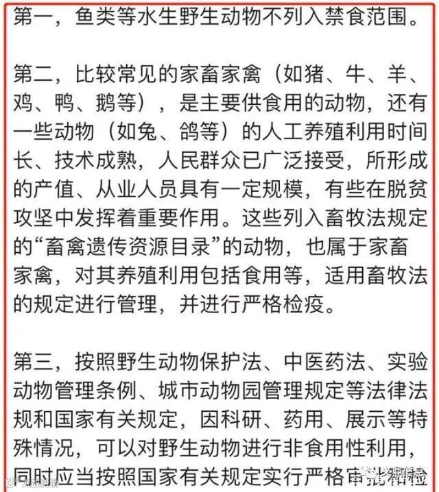 我国基于禁止使用野生动物规定的饮食,相对于人工驯化多年、繁殖新品种,形成了较大规模的产业,从业人数也非常多,不能起到扶贫的作用,未被列入摄食的野生动物名单例如,大家最容易明白的问题是,家里养的兔子在农村可以说非常多,但是野兔被当作野生动物来对待,家里养的兔子不是野生动物。