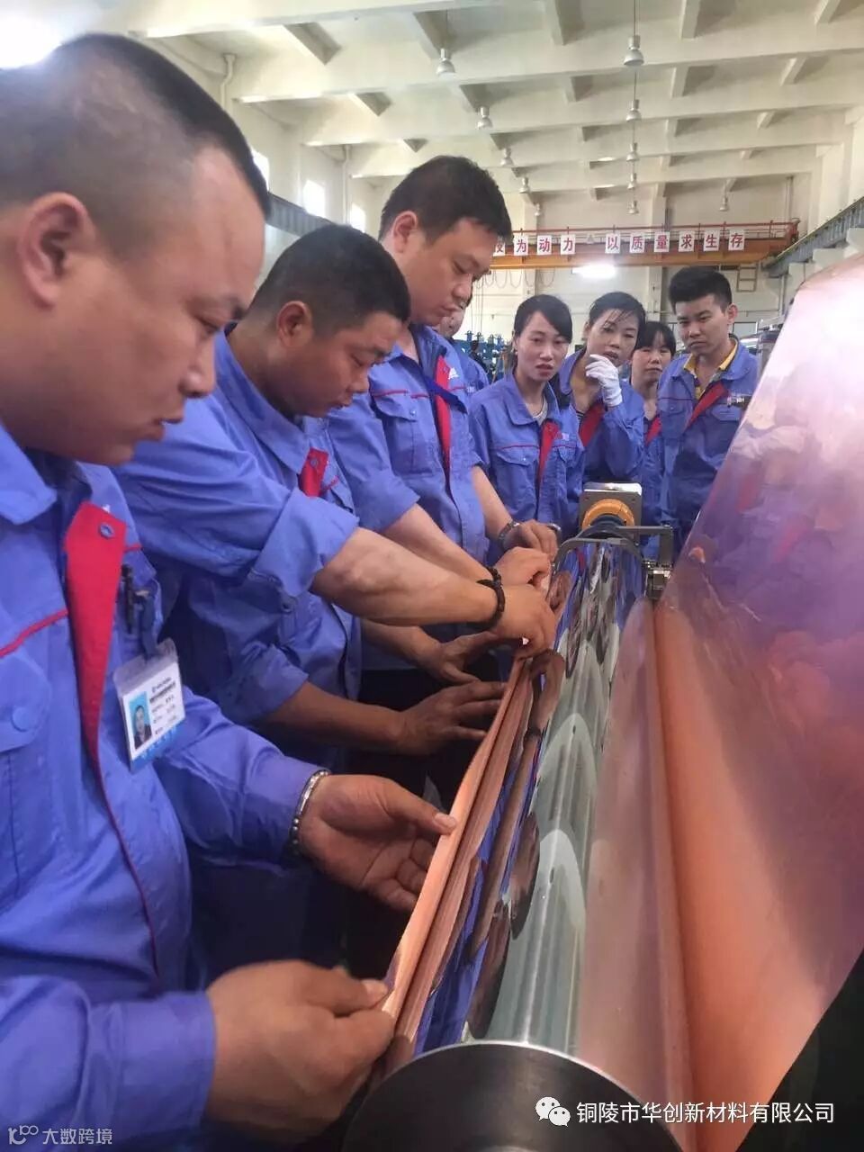 2017年4月28日,是全体华创人值得纪念的一天。公司生箔车间内,一台高度自动化的机器平稳运行,第一批12微米双面光铜箔产品诞生了,第一台生箔机的成功试机标志着历经五个月的工艺改造项目已经具备了开机生产条件,公司全体员工欢欣鼓舞。