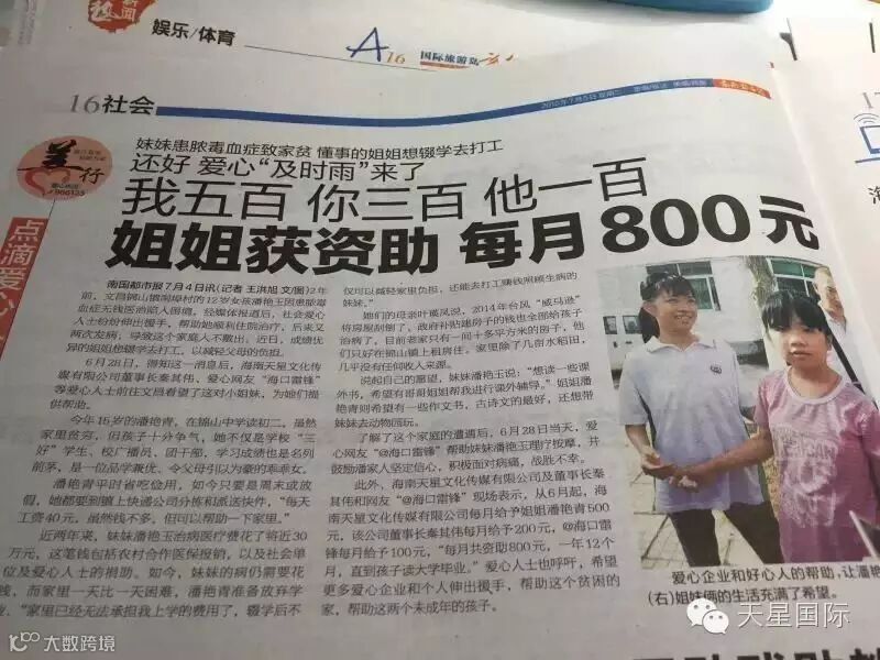 此外,海南天星文化传媒有限公司及董事长秦其伟和网友“@海口雷锋”现场表示,从6月起,海南天星文化传媒有限公司每月给予姐姐潘艳青500元,该公司董事长秦其伟每月给予200元,@海口雷锋每月给予100元,“每月共资助800元,一年12个月,直到孩子读大学毕业。”爱心人士也呼吁,希望更多爱心企业和个人伸出援手,帮助这个贫困的家,帮助这两个未成年的孩子。