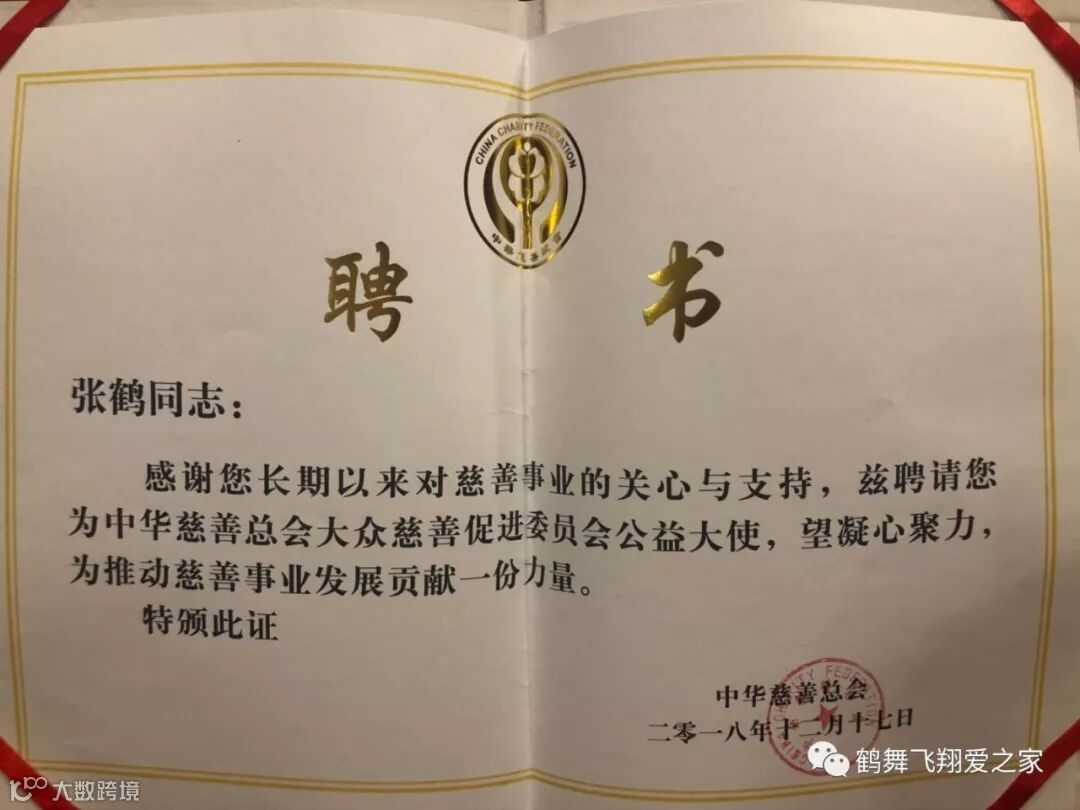 鉴于张鹤多年来坚持慈善事业,在启动会上,张鹤继续连任慈善总会慈善大使