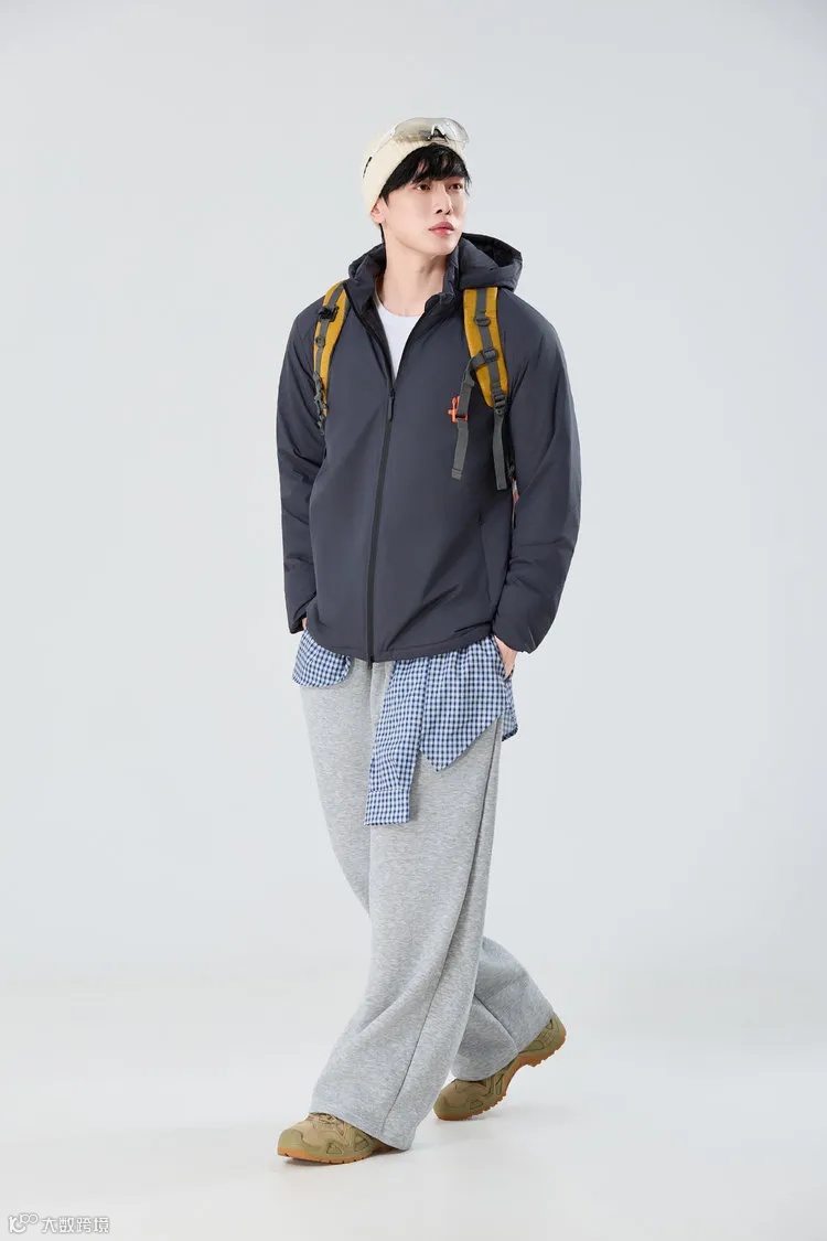 男生的话配西裤、工装裤、运动裤、牛仔裤都可以,通勤+户外都能穿~