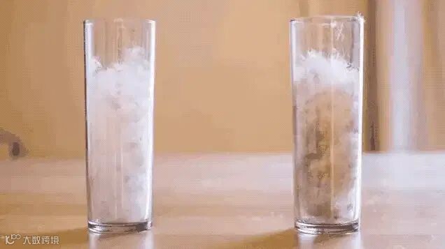 ▲对比之下,羽绒遇水会变成成坨,失去保暖性