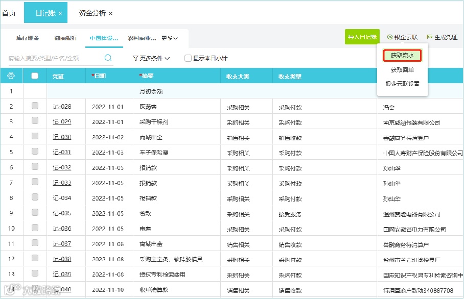 1.银行流水同步与日记账生成