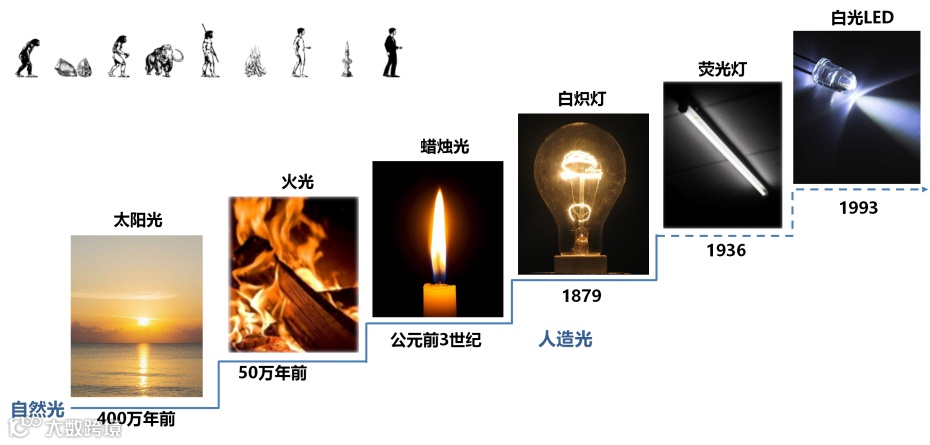 谢总通过给同学们展示灯具千年以来的发展史,从火把、蜡烛、煤油灯到白炽灯、荧光灯发展到现在LED,可以说照明发展史正是人类发展历史的见证。