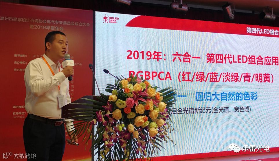 2019年10月25日,温州市勘察设计咨询协会电气专业委员会成立大会暨2019年度年会在温州瓯江畔大罗山瑶溪王朝酒店隆重召开。设计院、科研单位、生产厂家等,总人数达250人,乐雷光电非常荣幸受邀参加,并作为唯一的照明灯具厂商演讲发言。
