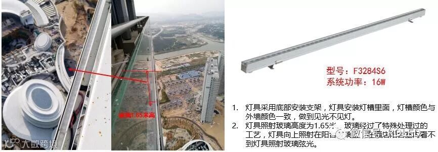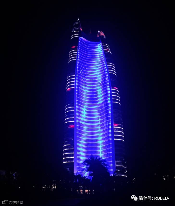 灯具照射在经过了特殊处理玻璃上,人走在阳台并无眩光现象,通过塔冠与背海面的四合一产品全彩联动及灯具与外立面的完美结合,把建筑的设计理念和最美的一面展现出来。