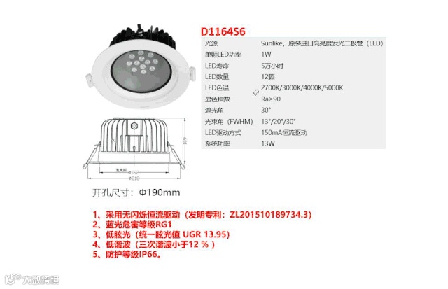 "无频闪、低谐波D116X筒灯系列"
