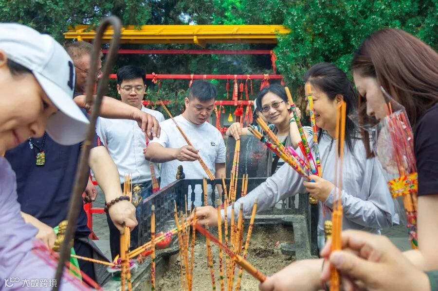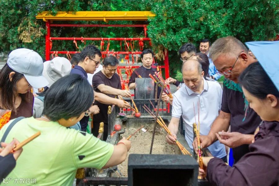 第四天,最后一站大家来到了济渎庙,全称济渎北海庙,始建于隋文帝开皇二年。与其它三渎水神庙相比,济渎庙占地面积和建筑规模都是第一位的,堪称天下第一水神庙,是隋唐及以后历代帝王祭祀济水神和北海神的场所。济渎庙平面呈“甲”字形,坐北朝南,前为济渎庙,后为北海祠,东为御香院,西为天庆宫,格局严谨,巧妙别致。走在这条长长的御道上,我们依然可以感受到当年皇家祭祀的庄严与神圣。最后大家一起在济渎水神休憩的寝宫前祈福,愿风调雨顺,国运昌盛,百姓安泰!