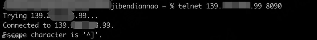1、在任意可上网的主机上,通过命令行“telnet 服务器公网ip 端口号”命令,检查服务器是否暴露了该端口