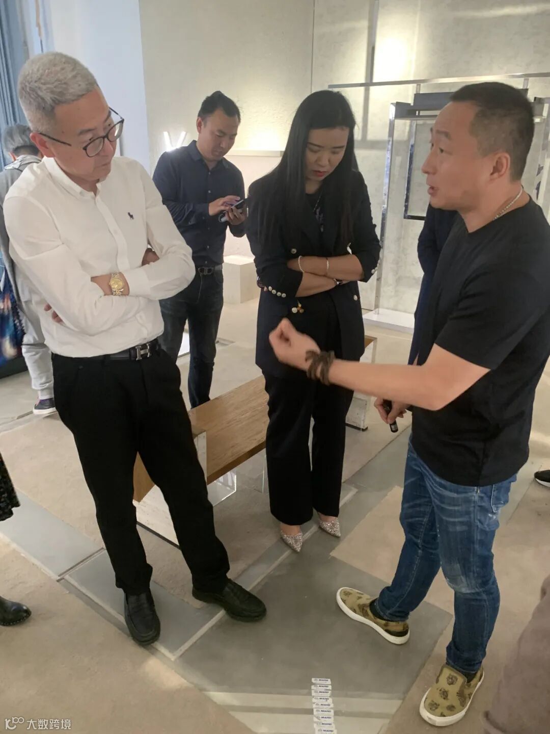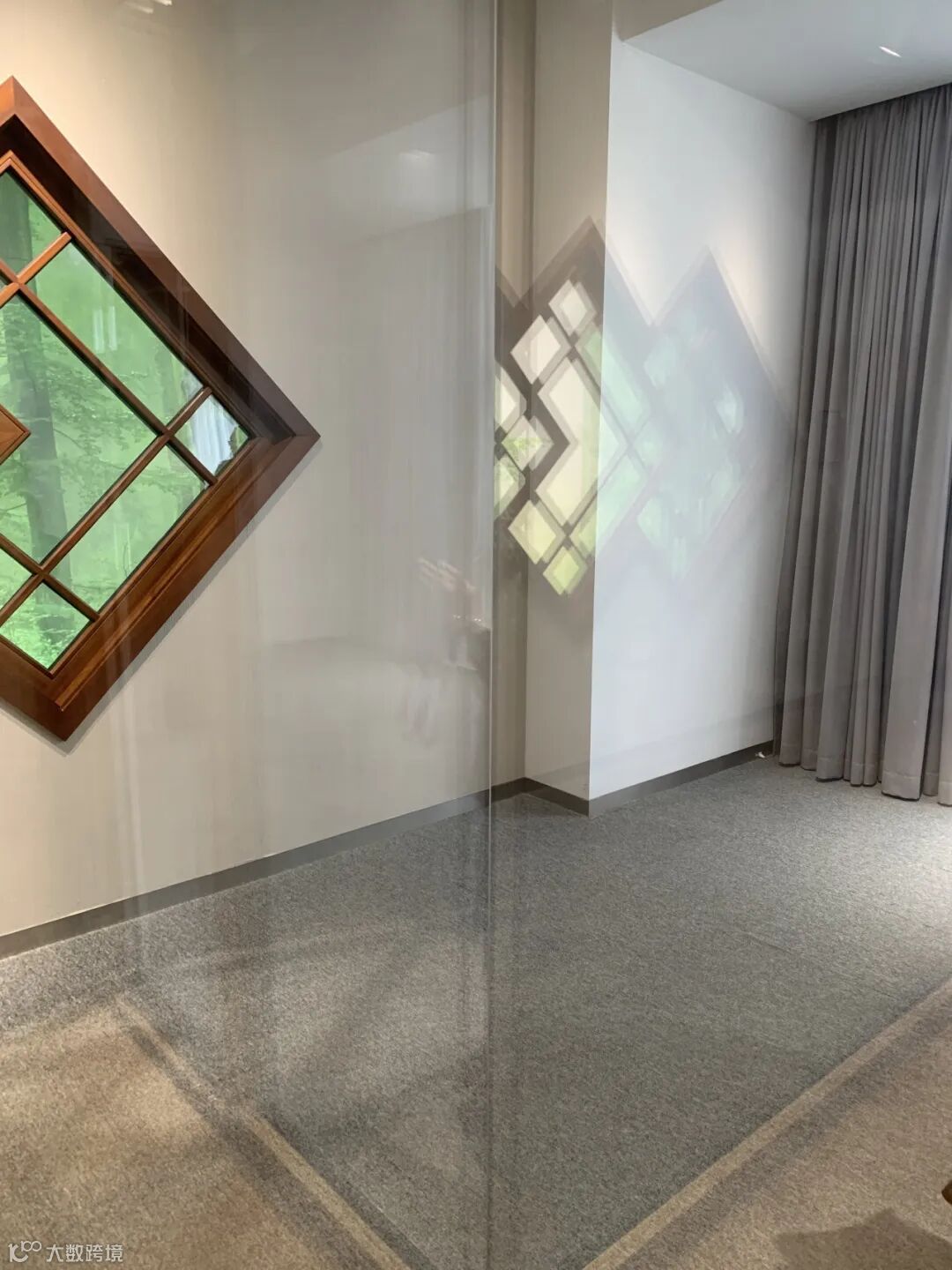2楼,顶级奢品牌样板间展示,星空顶可变色,单个样板间问询观察细节、品牌LOGO的LED手工灯区,转到到1楼门窗厂区,防爆防弹玻璃窗,机器制作出的榫卯结构木制品,媲美鲁班。
