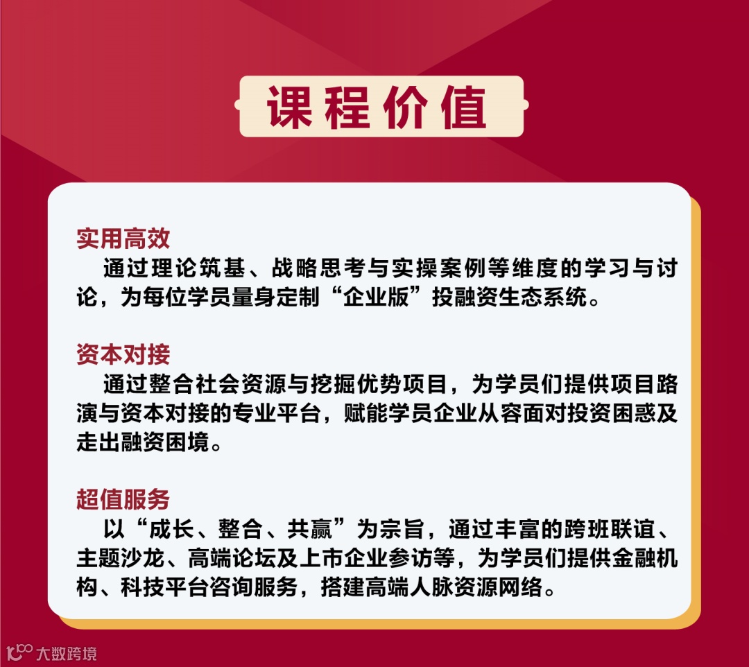 资本助力发展,生态成就未来。欢迎加入《资本生态高级研修课程》第六期,开启资本思维,追寻上市梦想,助企业基业长青。