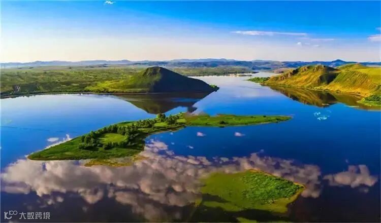 多伦湖景区水域面积2万亩,像一块镶嵌在高山和草原中间的翡翠。