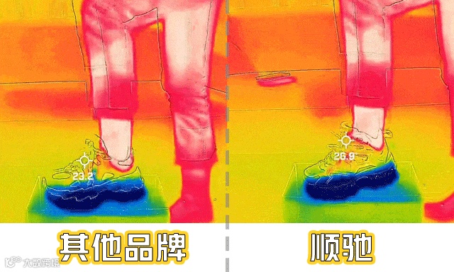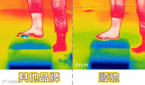 可以看到鞋在温感仪下都已经冷的发蓝了