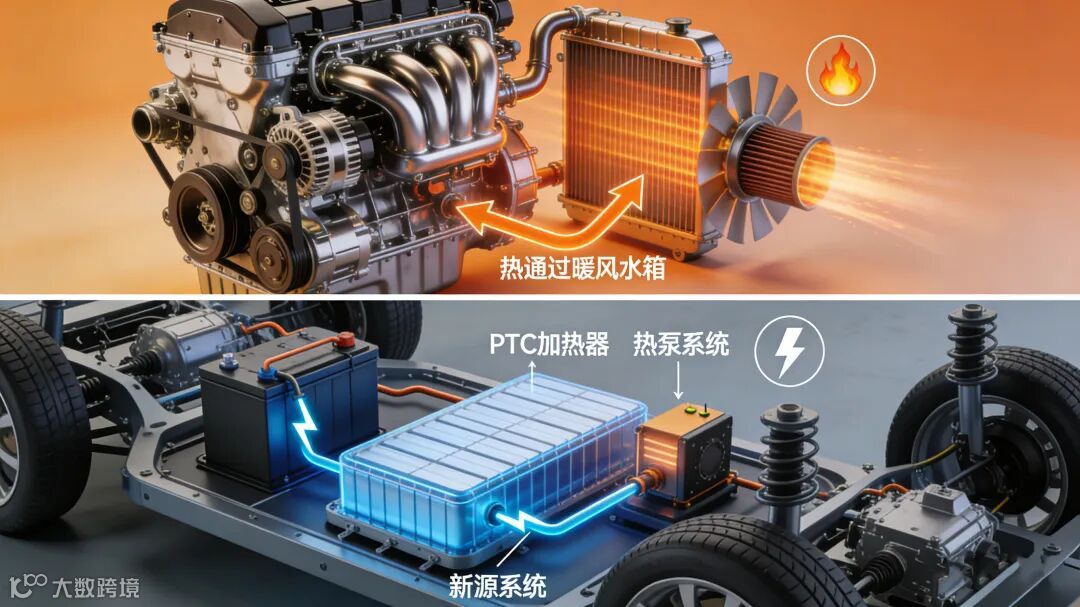 燃油车和新能源车的制热方式,有着天差地别的差异。