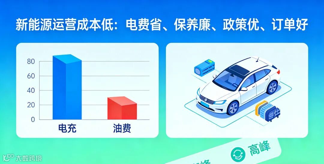 先算笔账:新能源比油车运营成本低不少。从能耗来看,新能源车车电费远低于油车油费,长期跑单能省下可观的能源开支;