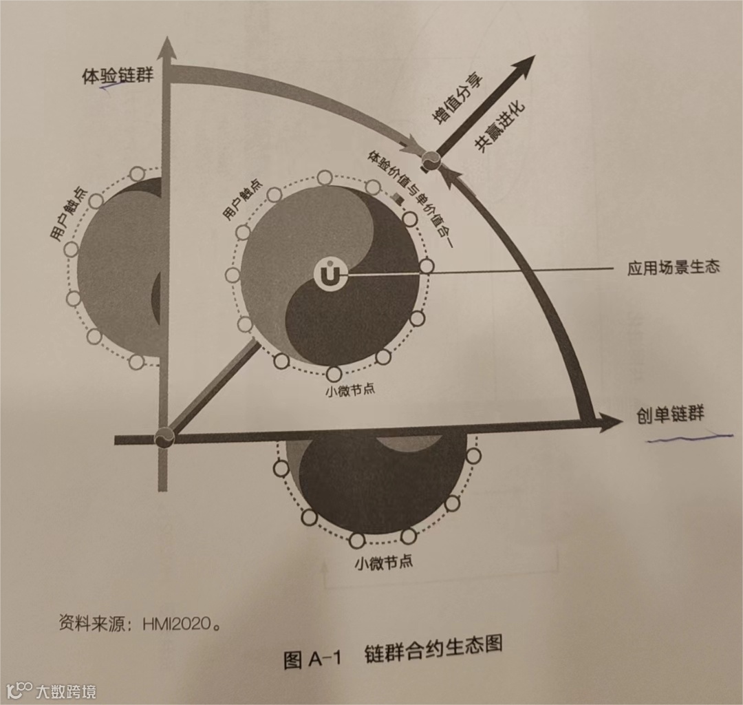企业的生态应该从人性的解放出发,所用的员工成了主体。生态系统的三个特点:共生,小微根据需求自发结合到一起;互生,小微相互取长补短;重生,小微根据用户需求不断创新、组合。海尔把所有的中层部门都去掉了,让员工自发成立了4000多个小微(节点小微3000多个,创业小微(几个节点小微组成)200多个创业团队,其中有41个已经获得风投),然后这些小微组合成了创单链群和体验链群,用体验链群和用户直接交互,由创单链群创造用户需求,这两者结合起来最终目标就是满足用户需求。