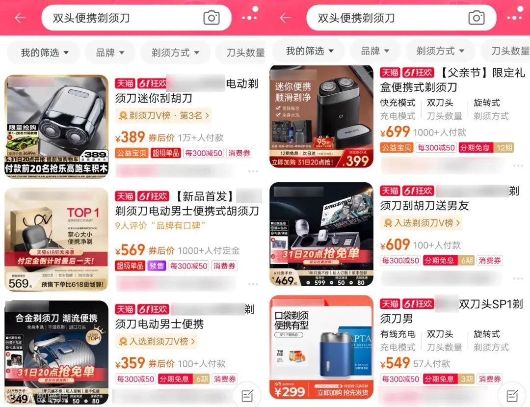 刀片、防水等级、续航上也有差距