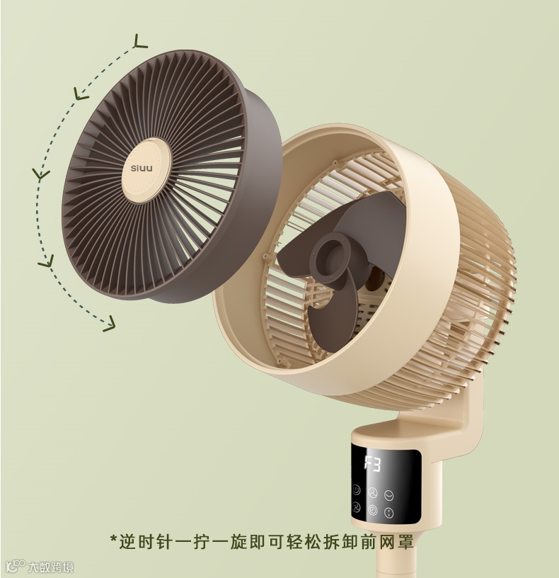前网逆时针旋出,可全身水洗,风扇保持干净